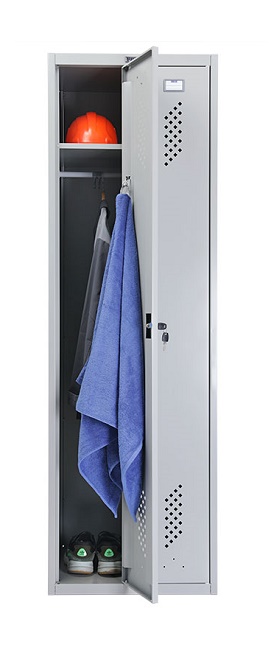 Предназначены для хранения сменной одежды в производственных, спортивных и других помещениях, а также для организации камер хранения. Шкаф изготовлен из металла толщиной 0,6 мм. Собирается двумя способами - при помощи заклепок LE (более жесткие, позволяет перевозить в собранном виде) или на зацепах LS (более удобные при сборке) Конструкции шкафов для раздевалок позволяют скреплять их между собой. В шкафах есть вентиляционные отверстия. Комплектуется полкой, перекладиной для плечиков и двумя крючками для одежды. В двери установлен ключевой замок Практик (2000 комбинаций) с возможностью смены цилиндра замка на бесключевой замок Euro-locks A129 (под навесной замок). Поставляются в разобранном виде