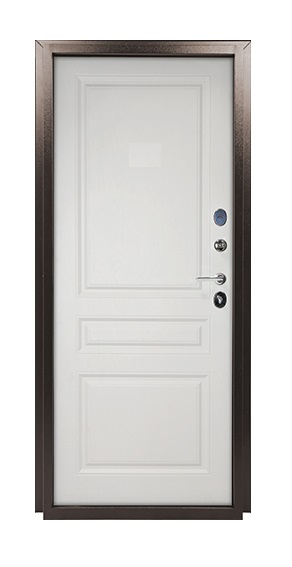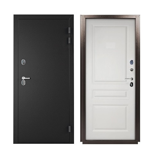 Дверь металлическая Норд металл/металл серии "Терморазрыв" оптимальное решение для установки в местах, подвергающихся воздействию природных температур. Данная конструкция двери надежно предотвращает промерзание двери при температуре на улице до минус 30 С. Дверь с терморазрывом имеет в районе притвора уникальную 2х камерную конструкцию, состоящую из холодной и теплой зон, которые разграничены между собой двойным слоем уплотнителя, пластиковым элементом в полотне и перфорацией в коробе. Дверь Норд комплектуется двумя сувальдными замками Промет 30.11 и Промет 30.01 четвертого класса взломостойкости, а также алюминиевой дверной ручкой Inspector 93 в цвете хром. Размеры наружные (ВхШхГ) 2104х989х130 мм, Размеры светового проема (ВхШ) 1913х688 мм, Монтажные размеры короба (ВхШ) 2050х880 мм, Глубина (толщина короба, мм) 130, Толщина полотна 87 мм, 4 контура уплотнения (3 шлегель Q-Ion и 1 Е-образный), Сувальдный замок Промет 30.11, Сувальдный замок Промет 30.01, Ночная задвижка, 3 петли на подшипнике, Наполнение двери - пенополистирол высокой плотности. Применение пенополистирола в качестве внутреннего наполнителя, обеспечивает низкую теплопроводность и высокую звуконепроницаемость. Дверь Норд покрыта износостойкой полимерно-порошковой краской. Цвет внешней стороны двери: антик серебро, внутренняя сторона: фрезированный МДФ панель 6 мм, белое дерево.