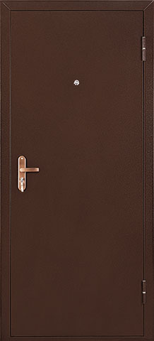 Двери металлические входные серии "Бюджет" устанавливаются во внутренних помещениях общественных, жилых и хозяйственных строений. Наружные размеры (ВхШхГ), мм 2101х956х69. Размеры светового проема (ВхШ) мм 1984х763. Монтажные размеры короба (ВхШ) мм 2060х860. Глубина (толщина короба, мм) 69. Толщина полотна 45 мм. Установлен цилиндровый замок Просам. Имеет 2 противосъемных ригеля, 1 контур уплотнения полотна. Внешняя панель двери - металлическая, внутренняя панель - ХДФ 4 мм. Цвет внешней стороны - антик медный, внутренней стороны - итальянский орех.