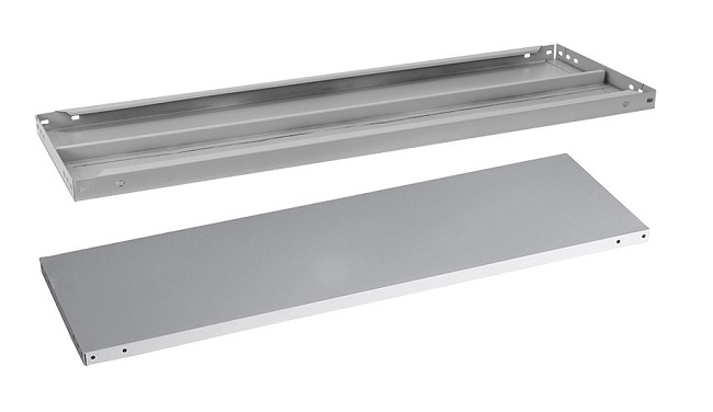 Полки MS Standart усилены центральным ребром жесткости, что обеспечивает их прочность. Высота ребра полки 33 мм. Шаг регулировки высоты полок 25 мм.