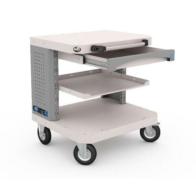 Дополнительно на тележку можно установить: выдвижную полку Comtex, выдвижной ящик Comtex, кронштейн для монитора, кронштейны для RACK модуля, цоколь для тумбы Comtex, лоток для тумбы/тележки Comtex, карман для документов А4 и другие аксессуары.
