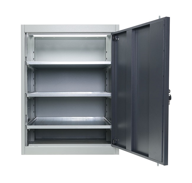 Тумба инструментальная Expert Т-1 предназначена для хранения вещей, инструментов и оснастки в производственных помещениях, гаражах, мастерских. Изготовлена из высококачественного металла. Толщина корпуса 1,5 мм. Комплектуется двумя съемными регулируемыми полками, одной дверцей. Полка тумбы выдерживает максимальную нагрузку - 240 кг. Закрывается ключевым замком Практик (10000 комбинаций). Цвет: корпуса серый Ral 7038, двери графит Ral 7016. Тип покрытия: порошковое. Поставляется в собранном виде