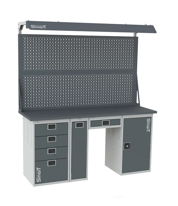 Дополнительно на верстак можно установить: аксессуары на экран SMART, подвесной ящик Smart, поменять вид тумб, а также возможна установка системы мастер ключ
