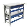 Выдерживает максимальную нагрузку на верстак - 300 кг, на верстачный ящик - 30 кг, на полку - 100 кг.