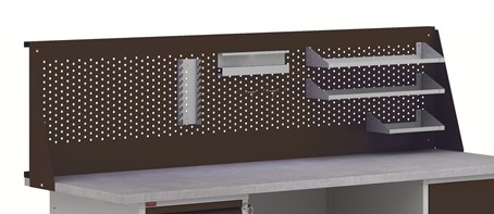 Перфорированный экран Э-1,6В черный - дополнительный экран длиной 1600 мм (ВП-2/1,6, ВП-3/1,6, ВП-4/1,6, ВП-5/1,6, ВП-6/1,6). Устанавливается сверху на экран Э-1,6. Изготовлен из металла толщиной 1,2 мм. Экран имеет круглую перфорации диаметром 7 мм. Дополнительно на экран можно удлиненную полку, укороченную полку, держатель инструментов, держатель ключей, крючки длиной 80 и 50 мм. Цвет: черный муар Ral 7021. Тип покрытия: порошковое.