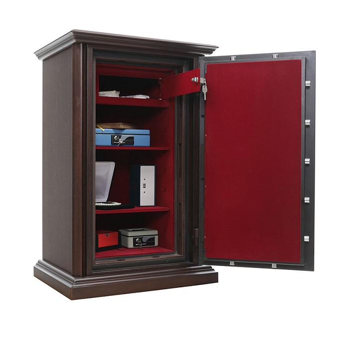 Valberg Гарант Евро 95 Т Д предназначен для сохранности документов и ценностей при пожаре и взломе. Рекомендованная сумма хранения денег до 6,5 млн. руб. для физических лиц и до 2 млн. руб. для юридических лиц. Устойчивость к взлому по ГОСТ Р 50862-2017: класс 2 (ГОСТ Р). Огнестойкость: ГОСТ Р 57384-2017: класс 60Б (ГОСТ Р). При заливке двери и корпуса сейфа используется запатентованная система армирования огнестойкого бетона. Толщина защитного слоя двери - 33 мм, общая толщина двери - 105 мм. Толщина боковых стен -77 мм, задней стенки - 51 мм. В сейф установлена: 3х сторонняя ригельная система запирания; защита замка и ригелей от высверливания и выбивания; система блокировки ригельного механизма при выбивании замка; тепловой замок, усиленный огнестойким уплотнителем. Сейф Valberg Гарант Евро 95 Т Д (дуб) закрывается ключевым замком KABA MAUER (под заказ возможно установить - электронный кодовый замок PS610/E036; биометрический кодовый замка PS610FD/E36FD). Предусмотрена возможность анкерного крепления к полу (анкерный болт в комплекте). Внешняя отделка выполнена из натурального дерева, внутренняя отделка из бархата. Покрытие ручек: матовый хром или золото. Цвет: корпус - №11-А, внутренняя отделка - С-1059. Возможны другие варианты окрашивания.